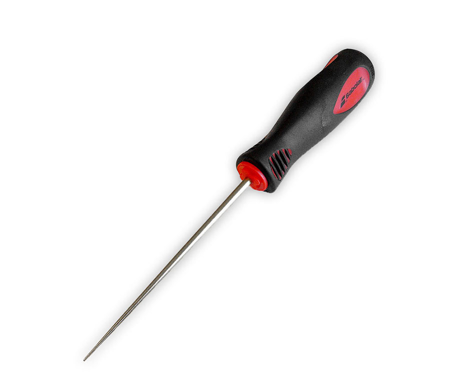 Die Babolat Tennisahle ist ein unverzichtbares Werkzeug für professionelle Besaiter und ambitionierte Spieler, die höchste Präzision bei der Saitenbearbeitung benötigen. Mit ihrer fein zulaufenden Spitze erlaubt sie ein exaktes Anheben einzelner Saiten oder Erweitern von blockierten Ösen. Dadurch lassen sich selbst enge oder schwer zugängliche Bereiche im Schlägerkopf mühelos bearbeiten.