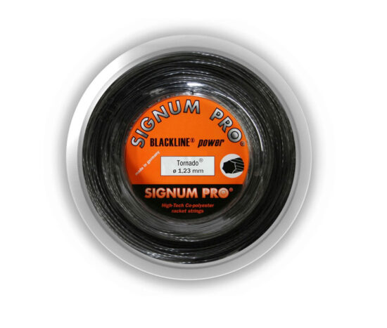 Diese innovative, siebeneckig geformte Saite wird in zwei Produktionsschritten hergestellt. Das Resultat dieser neuen Herstellungstechnik ist eine Saite, die weicher und elastischer ist als herkömmlich produzierte Saiten. Die Tornado bietet ein hervorragende Kombination aus Ballgrip, Power und Komfort.